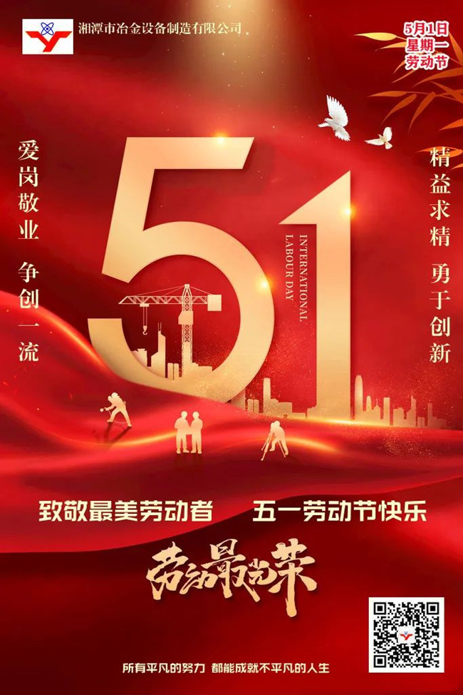 值此五一國(guó)際勞動(dòng)節(jié)來(lái)臨之際,湘潭市冶金設(shè)備制造有限公司祝所有朋友、伙伴和家人們:五一快樂(lè)!家庭幸福!假期開(kāi)心!